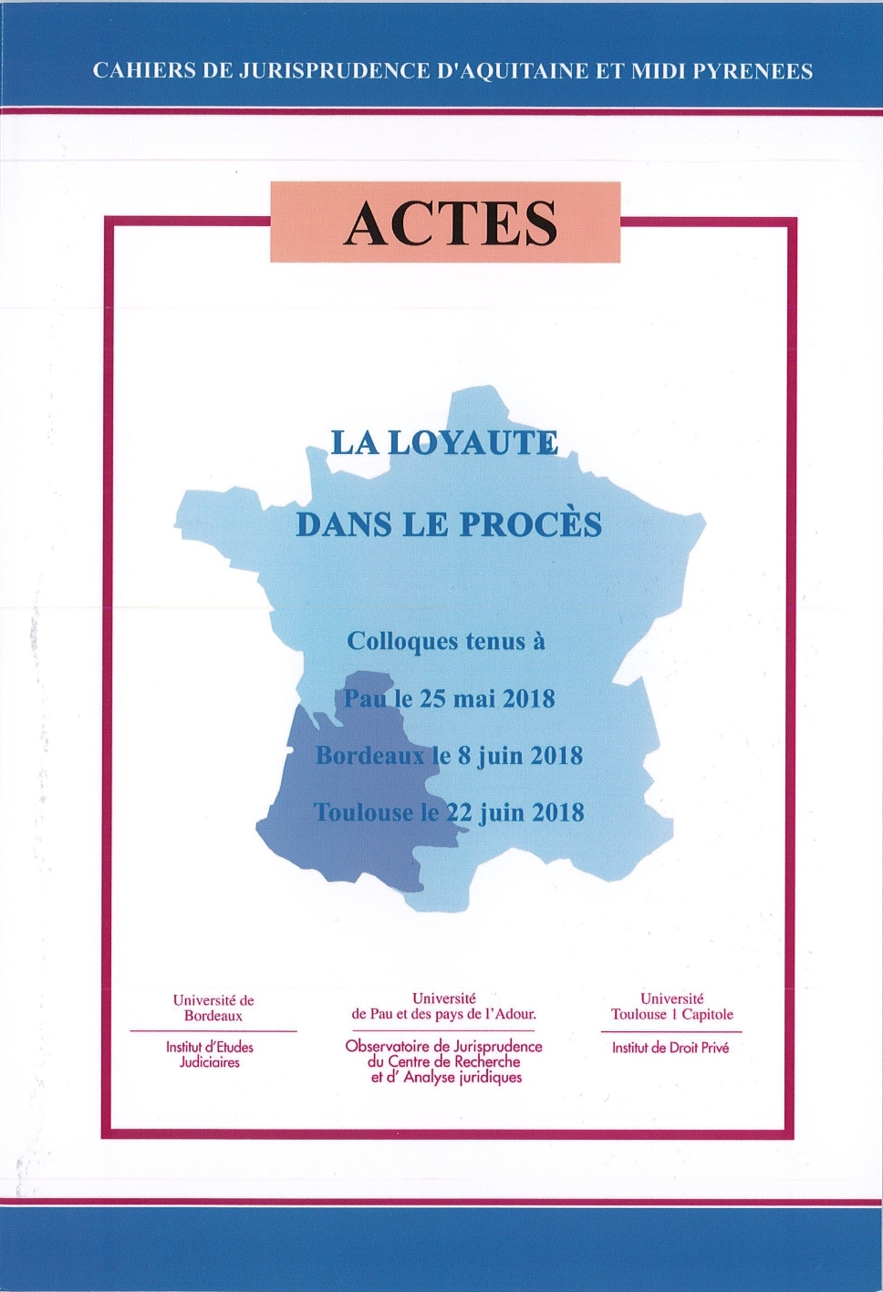 Actes des Colloques tenus à Pau le 25 mai 2018, Bordeaux le 8 juin 2018 et Toulouse le 22 juin 2018