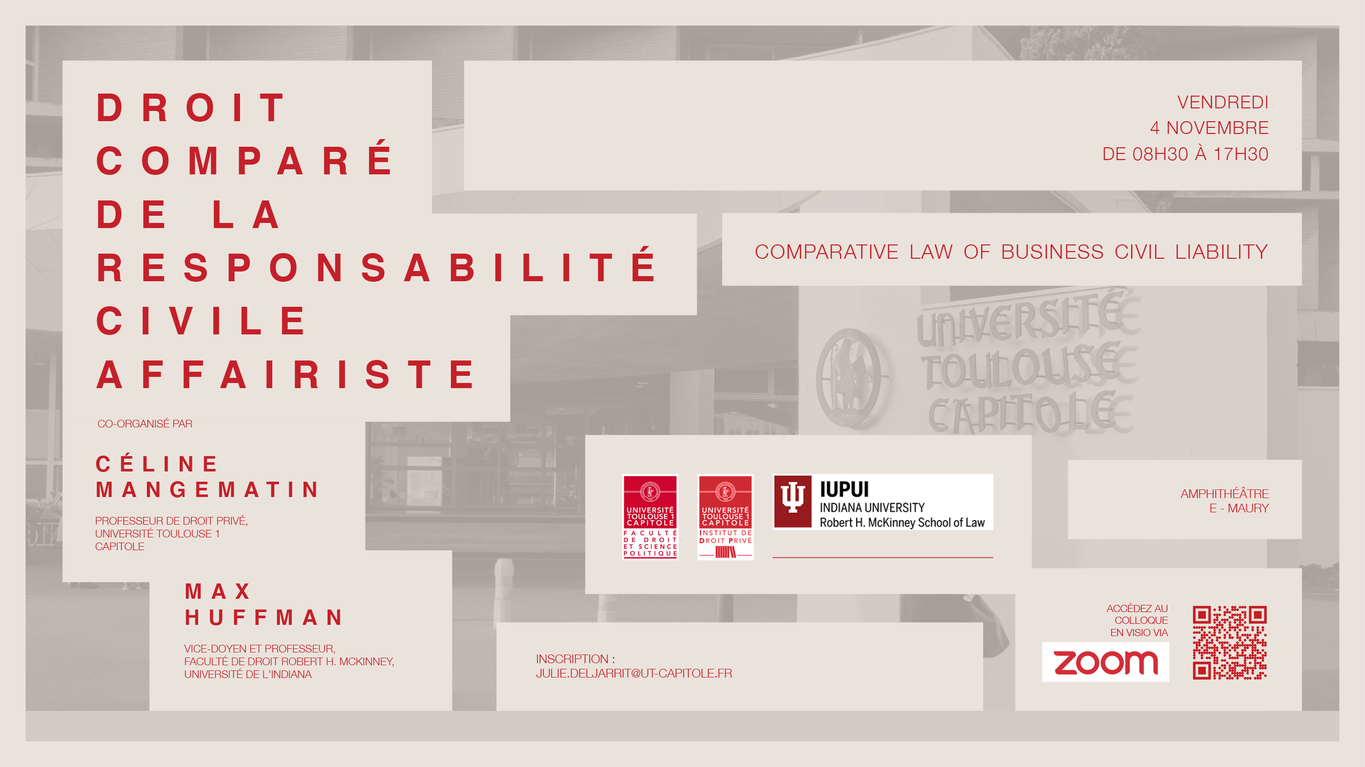L'Institut de Droit Privé de la Faculté de Droit et Science Politique a le plaisir de vous convier à un colloque sur la thématique du Droit comparé de la responsabilité civile affairiste.