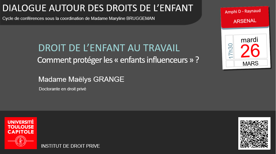 Ce second rendez-vous nous permettra d’aborder avec Madame Maëlys GRANGE, une problématique nouvelle, celle des enfants dits “influenceurs”, qui bouscule le droit de la protection de l’enfance comme le droit du travail.