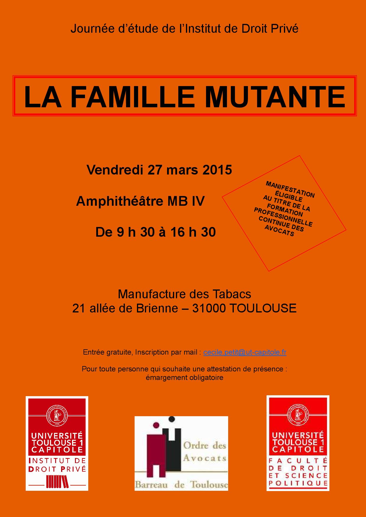"La famille mutante" journée d'étude de l'Institut de Droit Privé