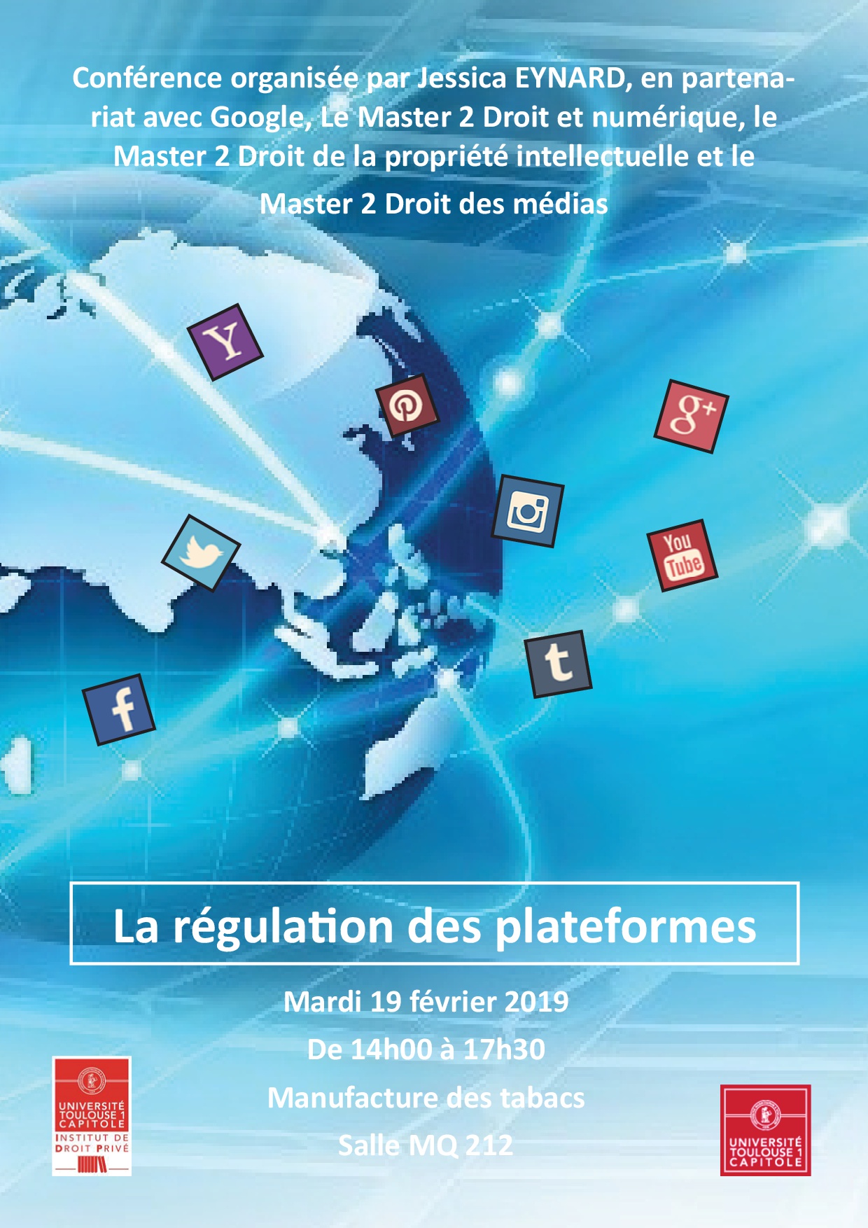 Colloque organisé par Jessica EYNARD, Maître de conférences en Droit Privé, IDP (UT1 Capitole), en collaboration avec l'IDETCOM et le CDA et en partenariat avec Google France, le Master 2 Droit et numérique, le Master 2 Droit à la propriété intellectuelle te le Master 2 Droit des médias