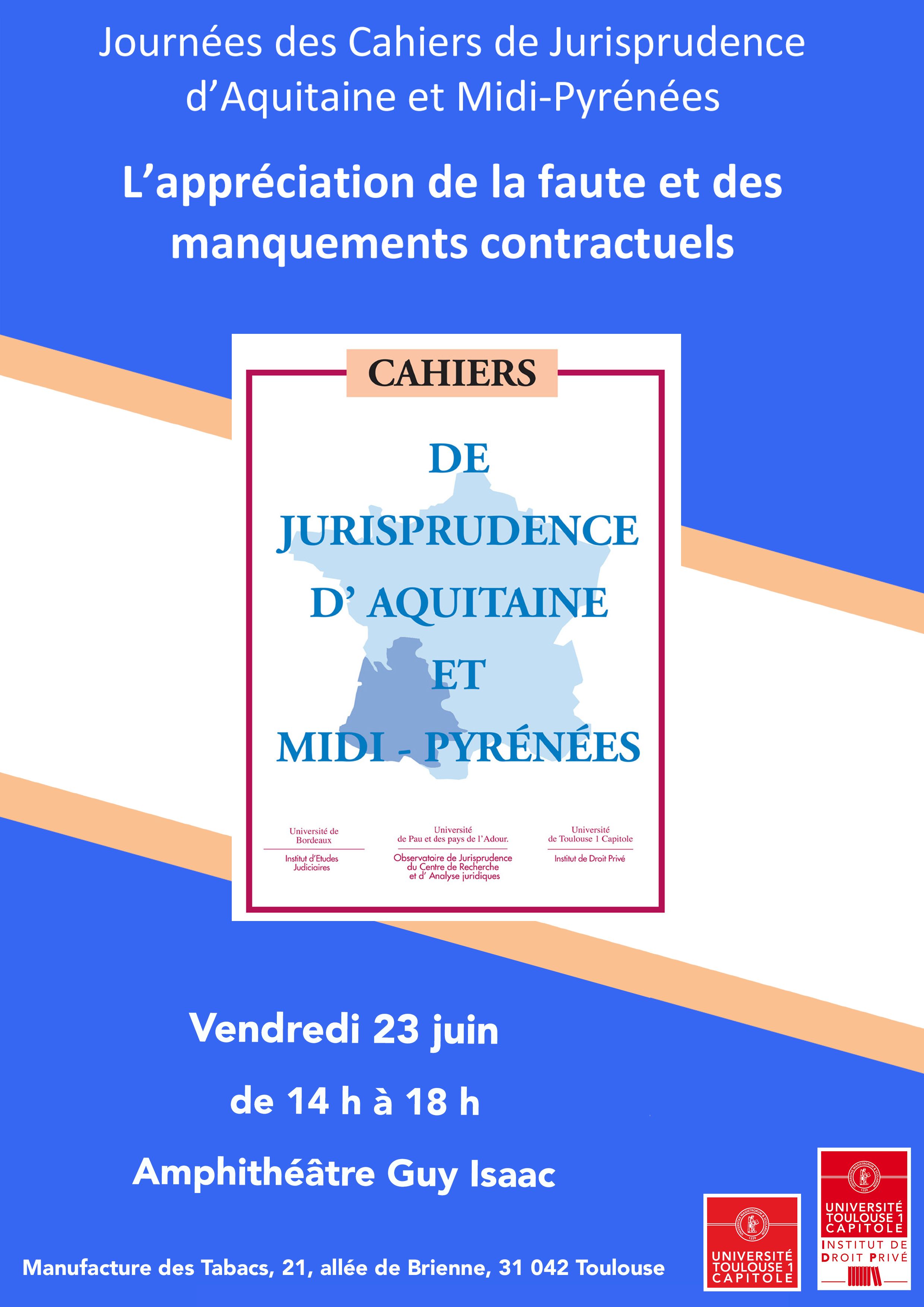 Chaque année, les Cahiers de Jurisprudence d’Aquitaine et Midi-Pyrénées lancent un rendez-vous autour de l’analyse de la jurisprudence locale des Cours d’appel d’Agen, de Bordeaux, de Pau et de Toulouse.