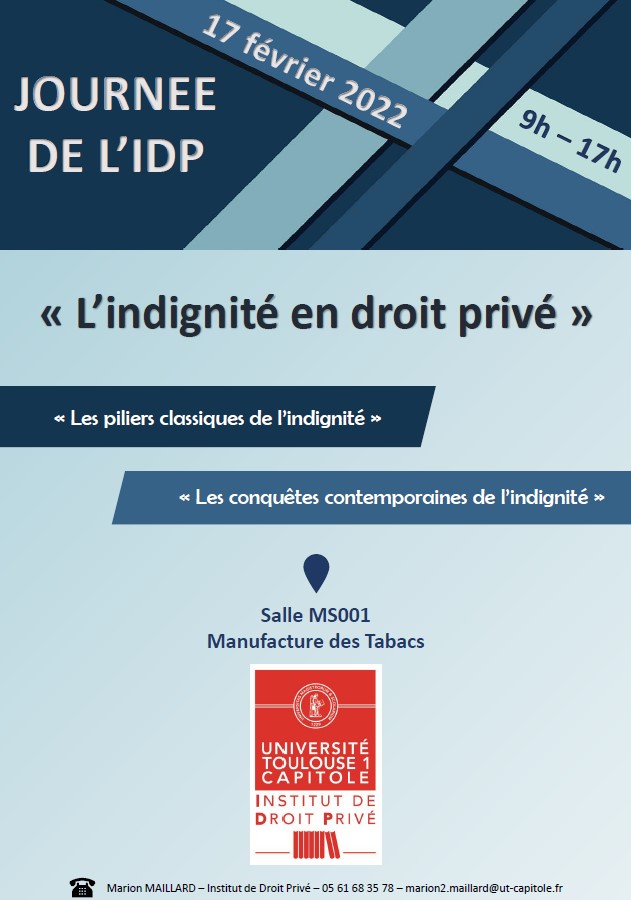 Chaque année, l'IDP organise un colloque sur une thématique différente. Cette année, la thématique proposée est "L'indignité en droit privé".