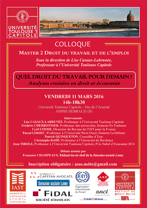 "Quel droit du travail pour demain ? Analyses croisées en droit et économie" colloque organisé par le M2 droit du travail et de l'emploi
