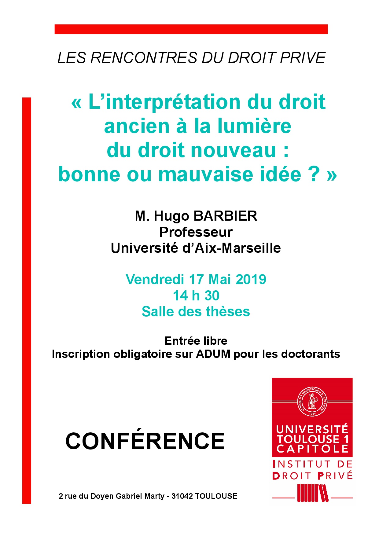 Les rencontres du droit privé «L'interprétation du droit ancien à la lumière du droit nouveau : bonne ou mauvaise idée ?» conférence de l'IDP par Hugo BARBIER