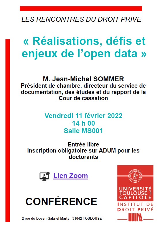 "Réalisations, défis et enjeux de l'open data", Rencontres du Droit Privé, Jean-Michel SOMMER