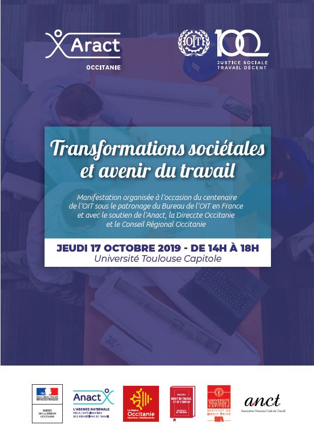 Manifestation organisée à l’occasion du centenaire de l’OIT sous le patronage du Bureau de l’OIT en France et avec le soutien de l’Anact, la Direccte Occitanie et le Conseil Régional Occitanie.